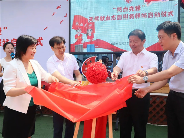 7月9日10时,“热血先锋”无偿献血志愿服务驿站揭牌仪式举行,我市无偿献血志愿者代表、各志愿服务组织志愿者代表,血站工作人员以及关心、支持志愿服务事业的爱心市民参加活动。