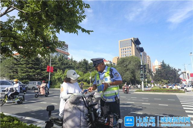 休息了一会儿,张腾又走到路口,拿着一摞宣传册劝导没戴头盔的骑电动车的市民,“‘一盔一带’是我们今年工作的重点,要持续进行宣传引导。”