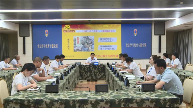7月28日,威海市人防办开展党史学习教育专题党课,深入学习贯彻习近平总书记在庆祝中国共产党成立100周年大会上的重要讲话精神,推动党史学习教育深入开展。