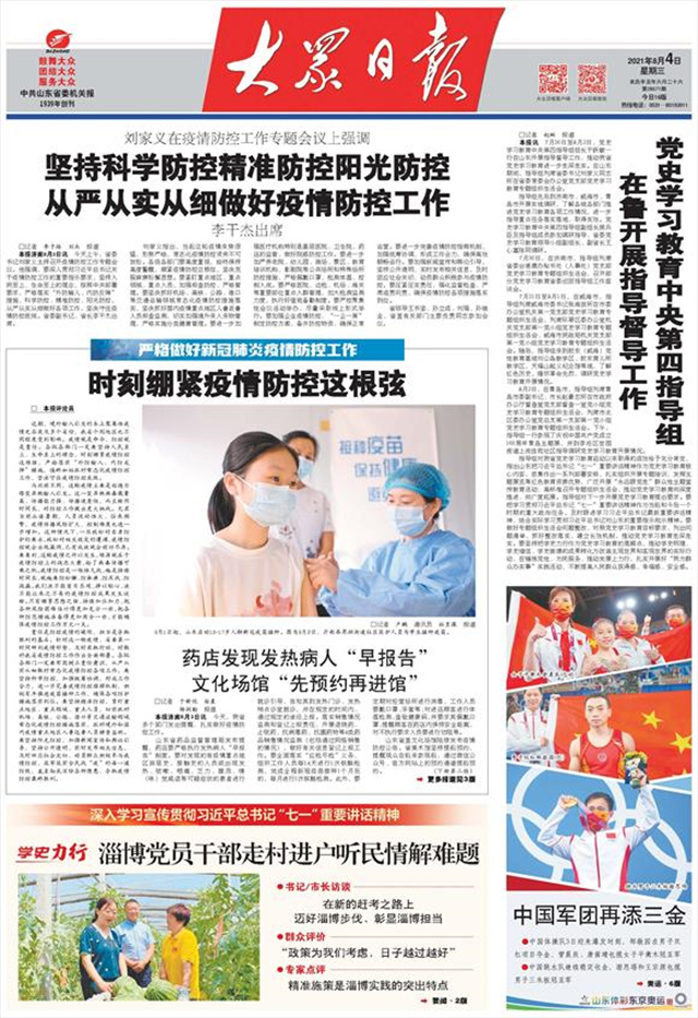 责任是防控疫情的堤坝,担当是夺取胜利的基石。针对这一轮疫情,省委第一时间研判疫情形势,及时采取行动,对做好我省疫情防控工作作出全面部署。各级各部门一定要牢固树立责任意识,从严从实从细做好常态化疫情防控各项工作。要坚持科学防控,加强统筹协调,形成工作合力,进一步完善疫情防控指挥机制,积极有序推进疫苗接种工作,确保各项防护措施落实到位。要坚持精准防控,紧盯重点地区、重点领域、重点人员,切实抓好机场、高铁、公路、港口等交通运输领域常态化疫情防控措施落实,抓好境外和国内疫情重点地区入鲁返鲁人员排查监测。要坚持阳光防控,加强新闻宣传和舆论引导,坚持公开透明,实时发布相关信息,及时回应社会关切,动员群众积极参与疫情防控,筑牢筑实全民战“疫”的每一道防线,直至彻底消除各种隐患,夺取疫情防控最终胜利。(来源:大众日报)