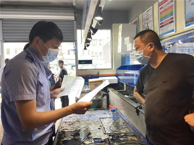 “老板,你们现在还卖进口冷链水产品吗?健康码给我们看一下吧。”执法人员鞠新红说道。