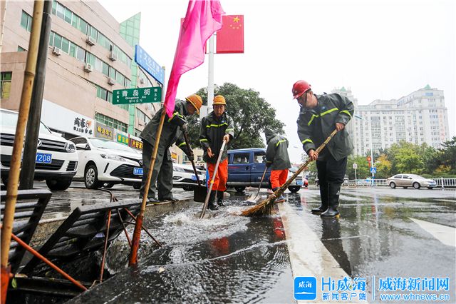 在环翠区的各个路段,和李明一样坚守职责岗位的市政防汛队员共打开易积水路段雨水箅子400余个,设置反光锥、彩旗等警示标志600余个。在百货大楼易涝点,抽水机及时抽排积水,华联地下通道附近,200个沙袋早已备好。在市政防汛队的日夜巡逻下,截至9月6日下午5时,环翠区主次干道畅通无阻。