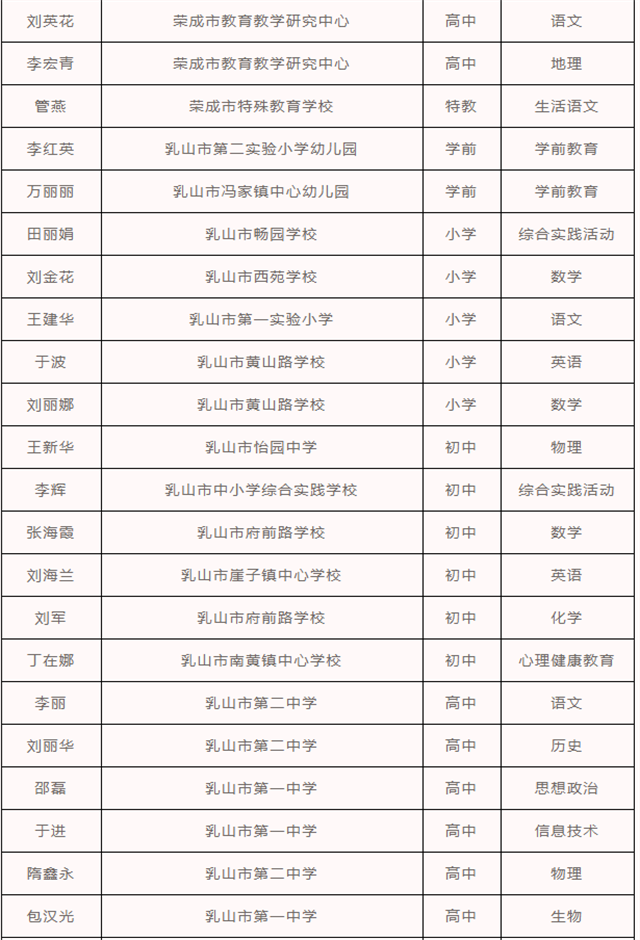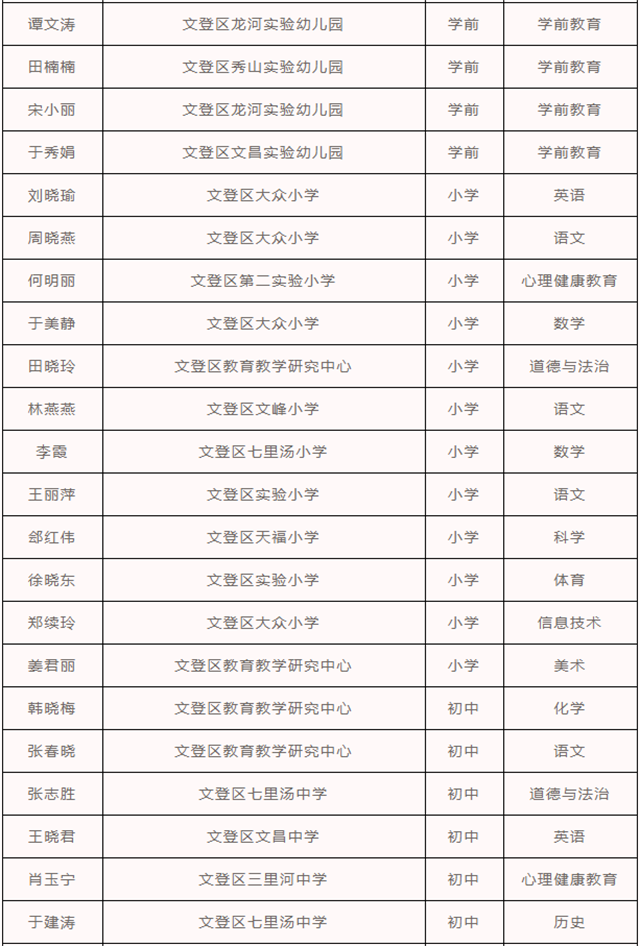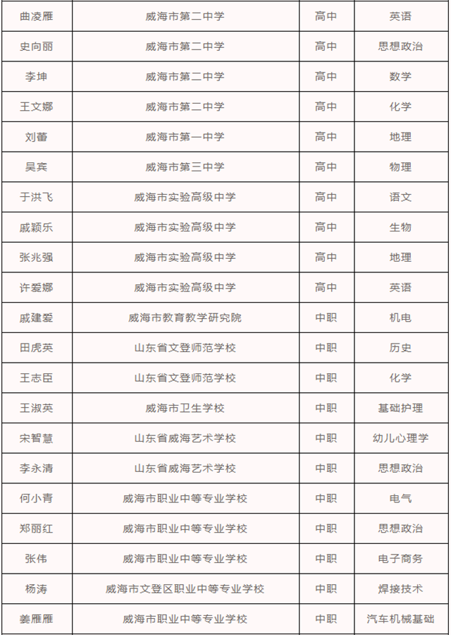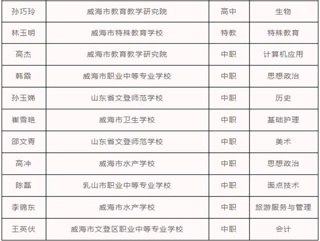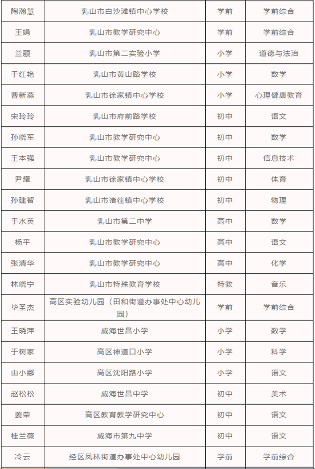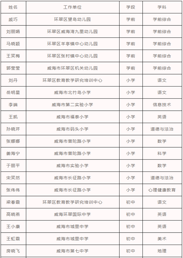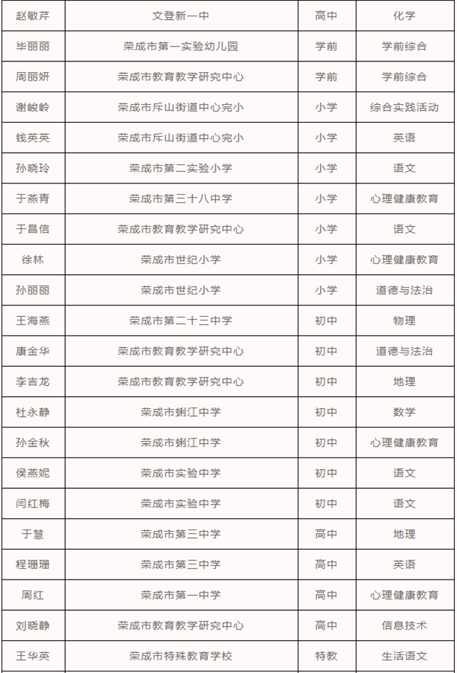 9月10日是我国第37个教师节,为表扬先进事迹弘扬师德新风,市委宣传部、市教育局评选出了“2021年度威海最美教师”“威海市教书育人楷模”“威海市师德建设先进集体”“威海市师德标兵”“威海首批教师志愿服务品牌团队”“威海市第十三届教学能手”“威海市第八届学科带头人”等先进典型,引导广大教师提高师德修养和业务素质,为办好人民满意教育作出更大的贡献。具体名单如下: