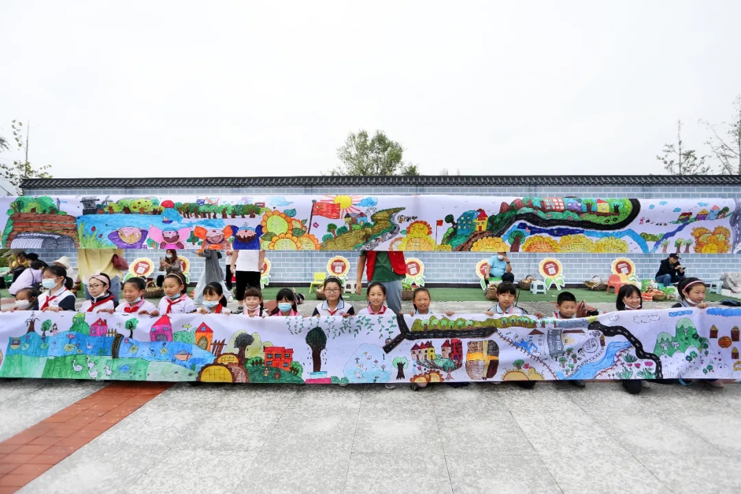 儿童友好小镇的“标签”无处不在。在活动现场,汪疃小学的孩子们拿起画笔,俯身在百米洁白画布前,用画笔书写家乡的繁荣、丰收的喜悦与生活的美,一幅手绘家乡百米画卷呈现在人们眼前。