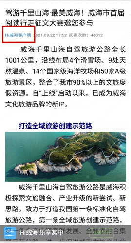 近日,由中共威海市委宣传部和威海市文化和旅游局主办的威海市首届阅读行走征文大赛正式启动,活动一经发布,就得到了各大媒体的关注、转发,总阅读量突破十万人次。