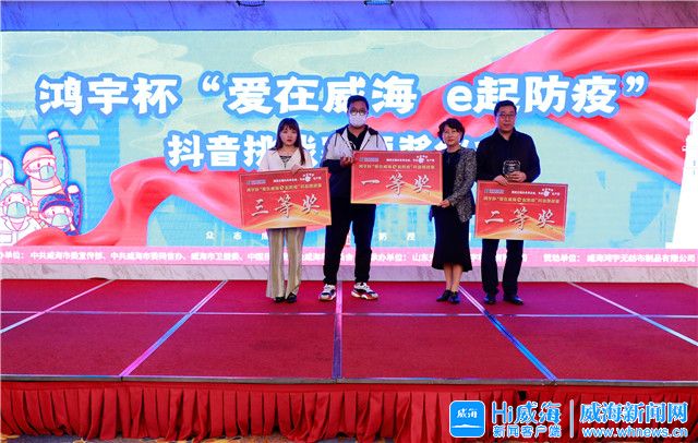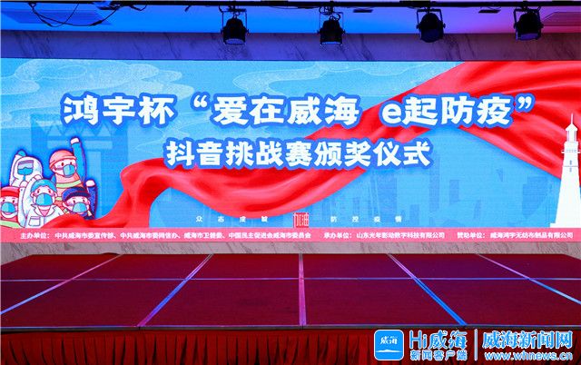 威海新闻网讯 10月15日,鸿宇杯“爱在威海 e起防疫”抖音公益挑战赛颁奖仪式举行。本次活动由市委宣传部、市委网信办、市卫健委、中国民主促进会威海市委员会等部门、单位联合发起,由山东光年影动数字科技有限公司承办,联合抖音平台面向全民公开征集防疫相关优秀短视频,受到广泛关注。自8月13日启动以来,共有176支视频作品添加#爱在威海e起防疫话题参赛,活动最终以视频总播放量1.2亿+,总点赞量120万+的成绩精彩收官。