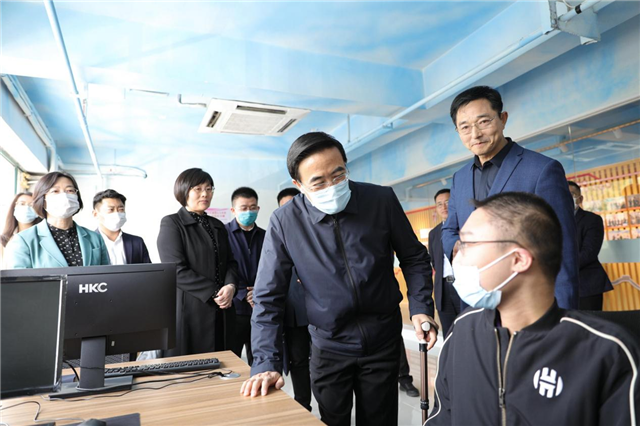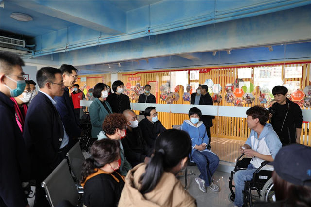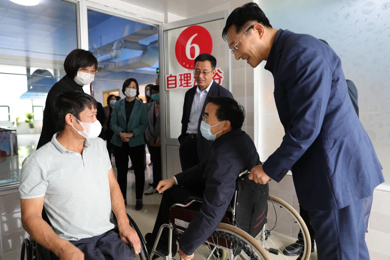 在心理咨询室,程凯与正在接受心理咨询的于瀚洋、相晓凡进行深度交流,详细了解他们的身体、生活、学习、工作等情况,并亲切握手鼓励他们积极上进,励志成才,做一个让爸妈放心并骄傲的阳光青年;在身体康复室内,与正在进行康复训练的于静涛、袁春晓等进行了亲切交谈,了解了他们的致残原因、家庭生活、身体康复情况,并与正在训练的残疾人进行互动掷球;在油画培训室,当了解到残疾人画家王刚的坎坷经历后,对他励志自强、自立的顽强精神给予肯定,并鼓励他多多画画,做好油画老师这个工作,培训出更多的残疾人画家。