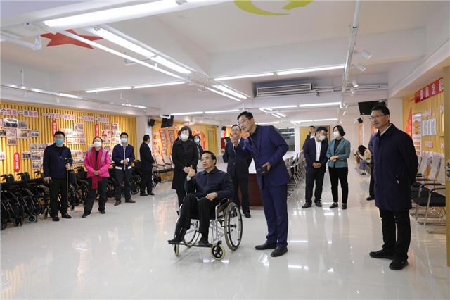 10月16日,中残联副理事长程凯一行走进威海长城爱心大本营调研公益助残工作。调研组一行听取了长城爱心大本营党委书记刘长城关于“双自”之门8+1公益助残项目基地建设、运营和残疾人康复培训情况介绍,逐一参观了“双自”之门8+1公益助残项目基地各个培训室。