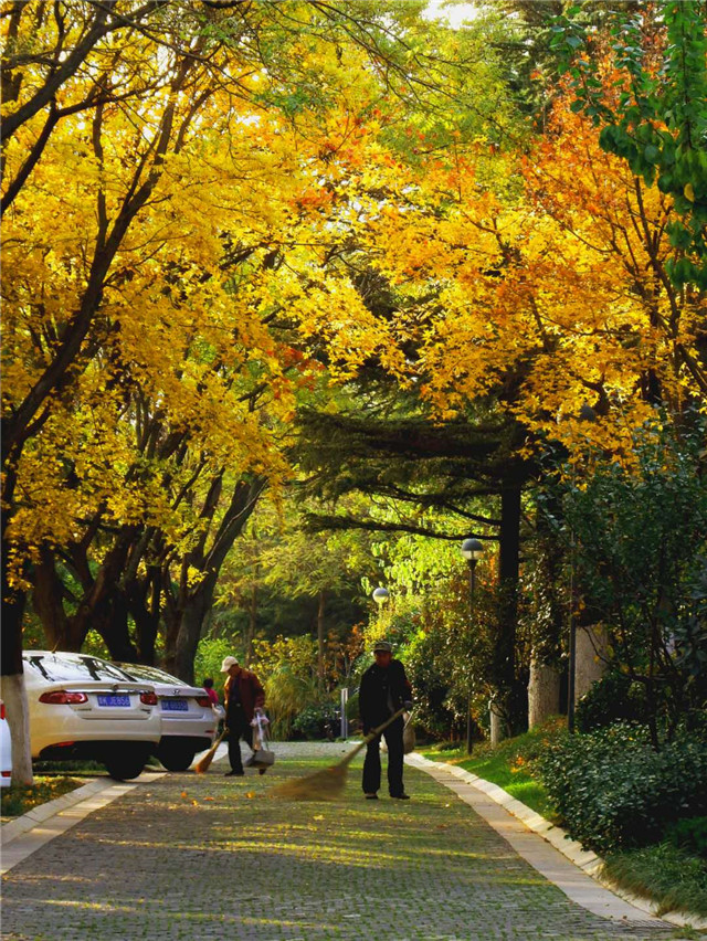 “各公园、广场及道路绿地管理单位结合公园、广场、道路绿地植物特点,选择合适区域进行落叶缓扫。对林下空间、草坪、甬路上的自然落叶尽最大可能保留,增加市民观赏时间,特别是乌桕、悬铃木、白蜡、银杏、榉树、樱花、栾树、黄连木、槭树、七叶树等的彩叶保留,让市民欣赏落叶美景。”工作人员表示。