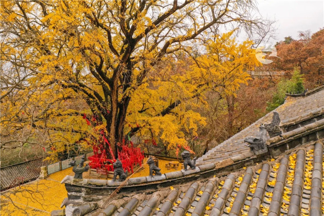 待到11月下旬,这棵千年银杏树下会落满金黄,仿佛披上了“黄金甲”,一方小天地美得不似人间。