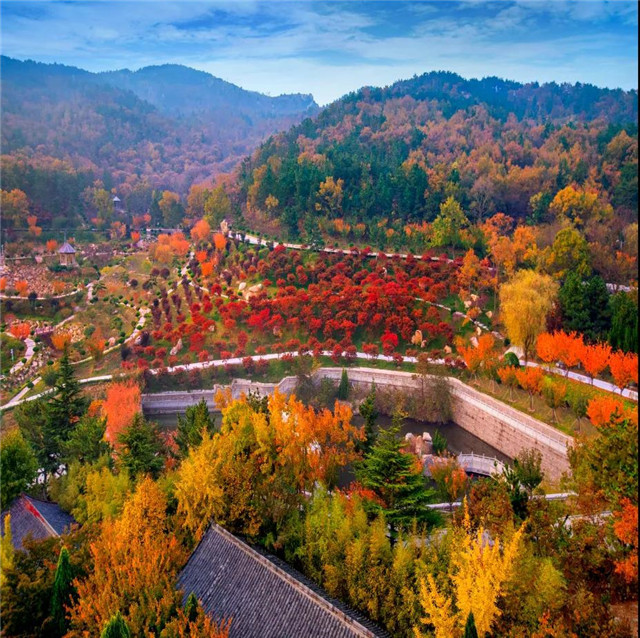 在赤山百花园、樱花大道南侧、环山路赤山谷入口、法华院停车场等处皆是红叶最佳打卡观赏地,红绿相间犹如一幅优美的彩色画卷。