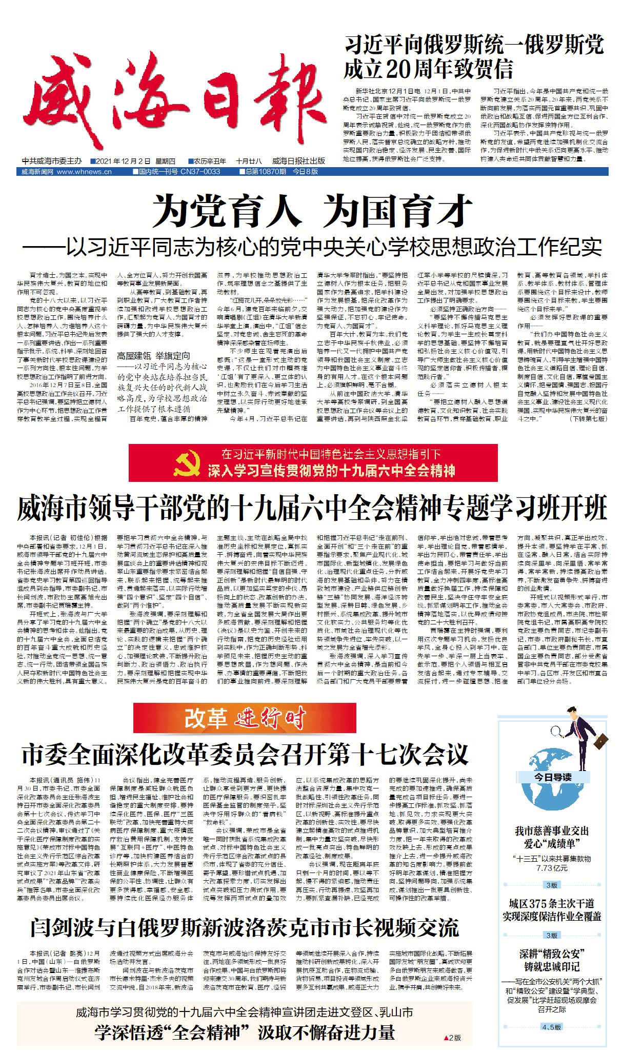 中国共产党威海市第十六届委员会第九次全体会议举行