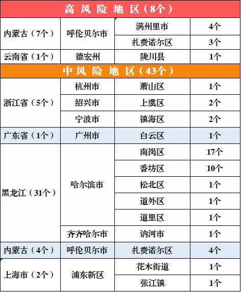 全国疫情中高风险地区名单