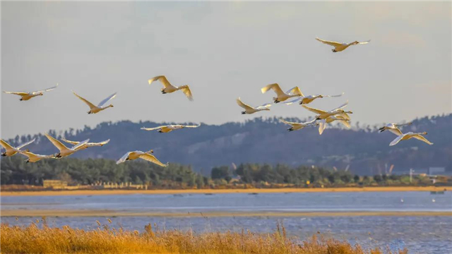 如今,“鸟类天堂”的称号已经和南海新区紧密联系在一起,南海新区也成为山东省湿地鸟类资源最丰富的地区。近年来,南海新区坚持将生态、生产、生活“三生共融”理念贯彻于开发建设全过程,全方位、全地域、全过程的生态环境保护建设。区内拥有水面近2万亩,涵养了万亩湿地,香水河、昌阳河、黄垒河三大淡水河流由此入海,建起了威海市首个国家级湿地公园五垒岛湾国家湿地公园。吸引了300余种鸟类在此栖息,无论是东方白鹳、中华秋沙鸭、天鹅、白琵鹭、鸳鸯等国家一级、二级保护动物,还是黑嘴鸥、震旦鸦雀、黄胸鹀等濒危、近危鸟类,众多鸟类嬉戏于山水河田,带来生机勃勃,成就雅致图景。(Hi威海客户端通讯员 王晓根 文/图)