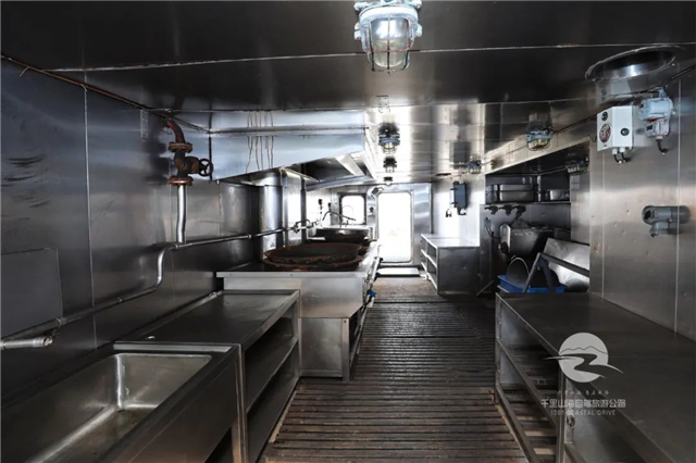 经过厨房时,惊讶于其内部的简单陈设。原来,当时由于舰艇空间有限,没有专门的餐厅和配套设施,士兵们需要在舰上就地吃饭。