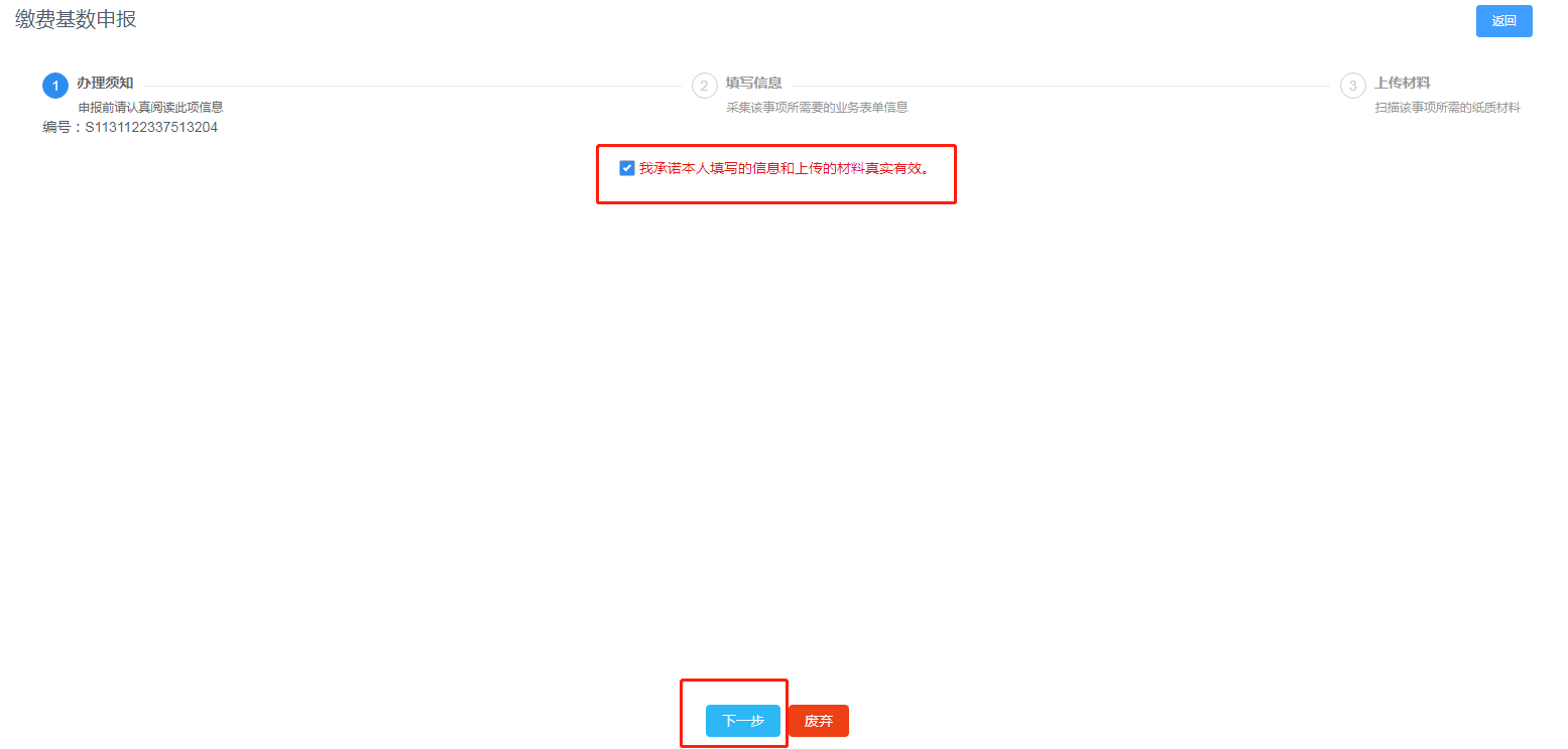 3.勾选“我承诺本人填写的信息和上传的材料真实有效”,点击“下一步”。
