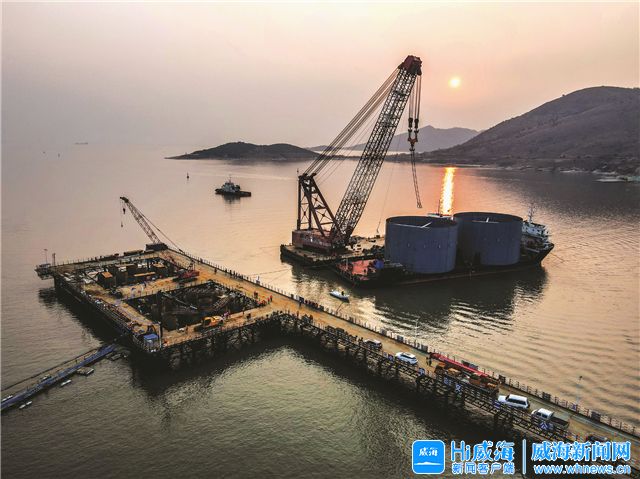 1月3日18时,随着一声开工指令的下达,乳山口大桥东侧主塔承台钢套箱下放施工缓缓启动,一个小时后,重210吨的首个钢套箱在800吨浮吊的整体吊装下,成功下放到位。4日晚,第二个钢套箱成功完成下放作业。据了解,此次东侧主塔承台钢套箱下放施工,是乳山口大桥又一个重要建设节点,标志着大桥项目建设即将由水上作业转为地面干作业。