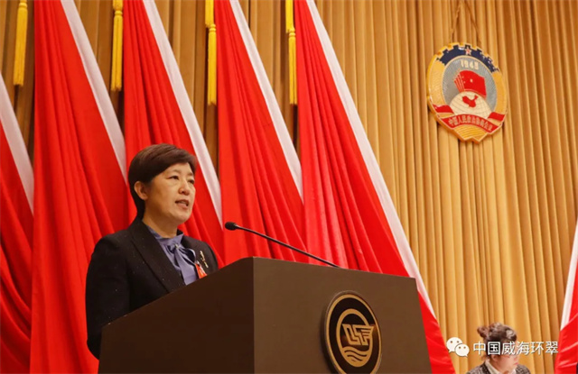 上午10点,大会正式开幕,邓洁主持开幕式。孙青松代表环翠区政协第十四届委员会常务委员会向大会作工作报告。