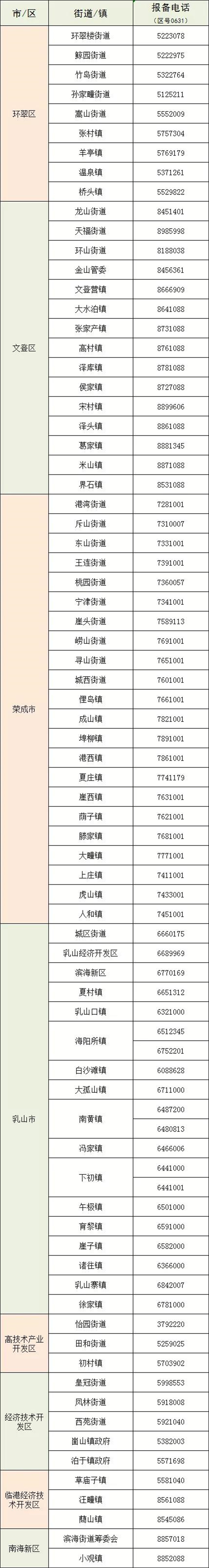 各街道/镇报备电话