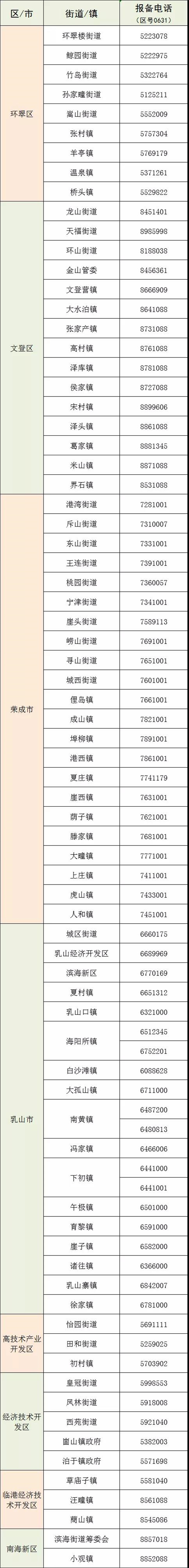 各街道/镇报备电话