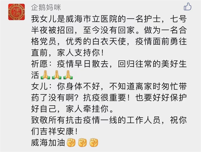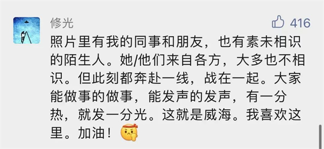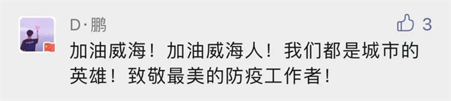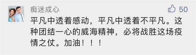这两天,《为每一位守望互助的威海人,点赞!》《谢谢你,战“疫”中每一个平凡的威海人!》刷屏了威海人的朋友圈,评论区的留言,一句句能量满满的话语让人“破防”。
