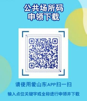 (一)已注册、申领过公共场所码,因丢失或损毁需重新下载打印的,使用“爱山东”APP扫一扫下面二维码,输入主体名称或关键字进行查询,例如“汉庭酒店”、“家家悦”等商户主体的关键词或全称,搜索出对应结果,打开公共场所码,保存和打印张贴即可。