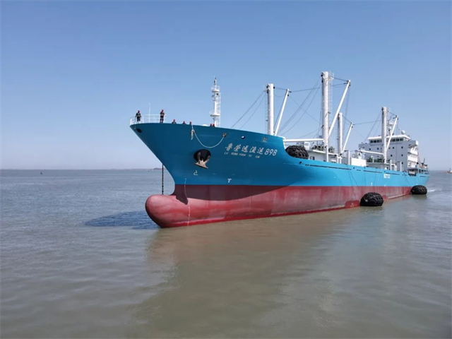 “鲁荣远渔运898”远洋渔业辅助运输船船长136.8米,总吨位8081,载重量9846.8吨,是国内第一艘采用冷桥结构的CCS级万吨级冷藏运输船。