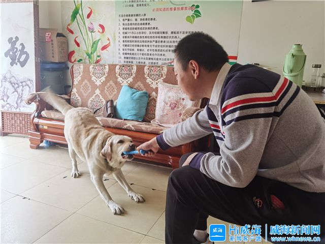 40天的时间,李燕青和导盲犬相处非常融洽,顺利完成了考试,拿到了“毕业证”。今年1月23日,导盲犬跟随李燕青来到了威海,成为了他的“眼睛”。