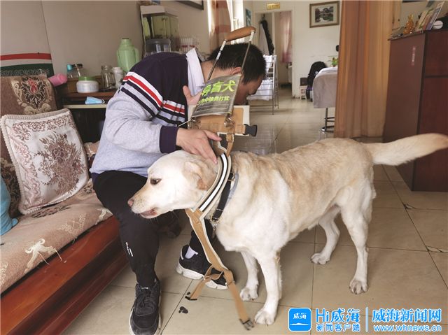 40多天后,李燕青回到威海,和他一起回来的,还有3岁的“奥迪”——一只经过专业训练的拉布拉多导盲犬。