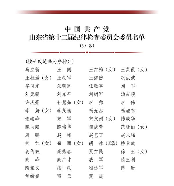 中国共产党山东省第十二届纪律检查委员会委员名单