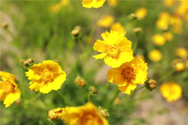 又是一年初夏时节,文登区泽头镇的3000亩金鸡菊已悄然盛开,一望无际的金色花海,随风摇曳,美丽壮观。