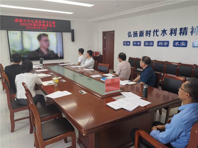 6月10日,山东省调水工程运行维护中心威海分中心党支部开展2022年理论学习小组第六次集体学习活动,围绕“牢记嘱托走在前勇担使命开新局”主题开展集体学习研讨。山东省调水工程运行维护中心威海分中心副主任王竹波主持活动,全体干部职工参加活动。