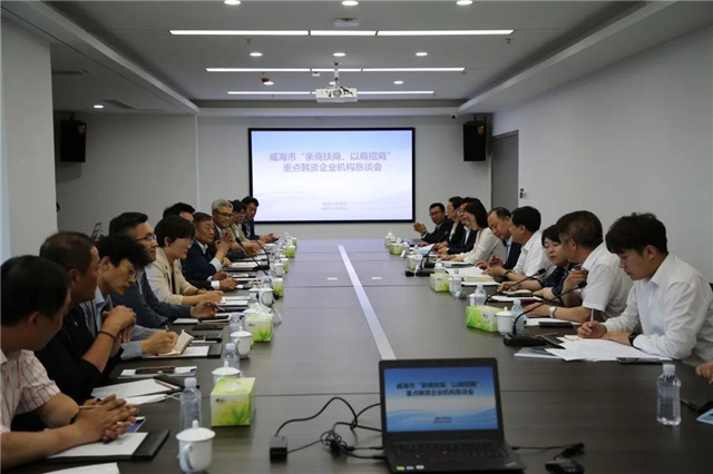 6月24日,威海市“亲商扶商,以商招商”重点韩资企业、机构恳谈会召开。威海市商务局局长宫本杲、中国韩国商会首席副会长金洪基出席会议并讲话,11家在威重点韩资企业、机构负责人参会。
