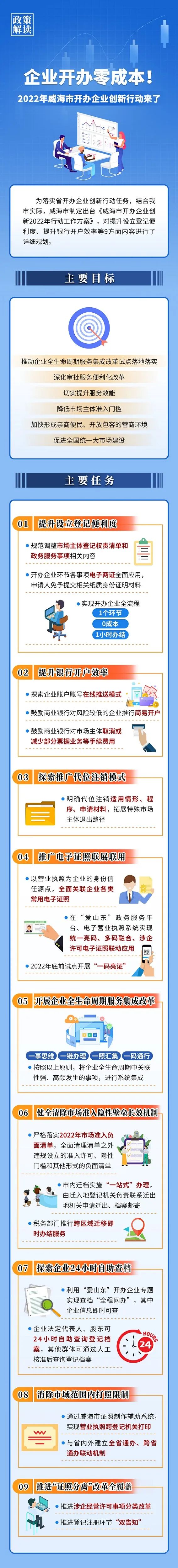 一图读懂 | 企业开办零成本!2022年威海市开办企业创新行动来了
