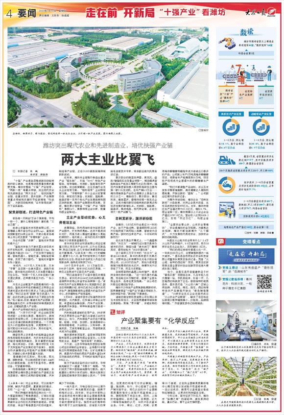 潍坊突出现代农业和先进制造业,培优扶强产业链