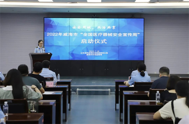 为普及医疗器械安全使用知识,推动医疗器械产业高质量发展,7月18日,市市场监管局联合省药监局区域检查第四分局举行以“安全用械,共治共享”为主题的2022年威海市“全国医疗器械安全宣传周”启动仪式。
