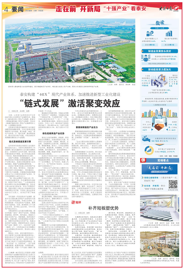 怎样补齐短板,实现突围?泰安的办法就是锚定新型工业化强市战略,重点打造13条产业链,锻造产业生态,“链”起澎湃动能,链式突围战打得有声有色。