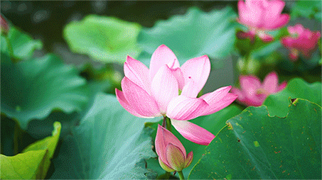 开放的荷花,粉红粉红,一朵朵亭亭玉立。一阵微风拂过,荷叶荷花随风摇曳,送来阵阵清香。