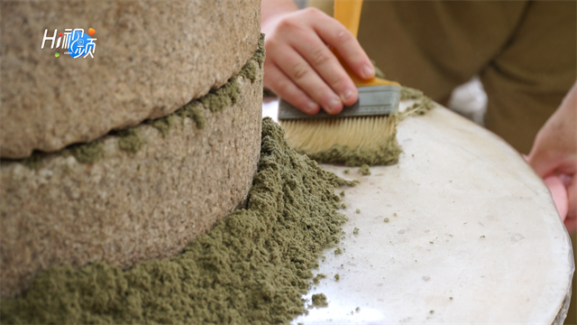 这里的负责人姜新说,磨艾绒原本可以用电动石磨,但是为了安全起见,这些青年只能使用手动的石磨……