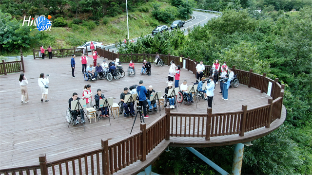 活动中,志愿者还带着“轮椅画家”们,自上而下游览里口山风景区的美好风光。