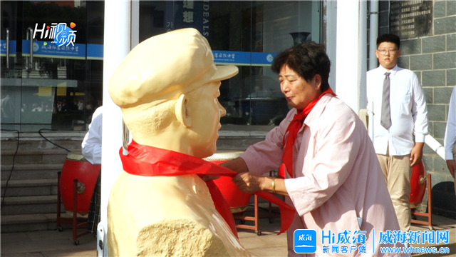 72岁的画家刘静,在辽宁省抚顺市本溪路小学读书时,曾作为学生代表为雷锋戴过红领巾。今天,她来到威海环翠中学,亲手为雷锋铜雕塑像系上了红领巾。
