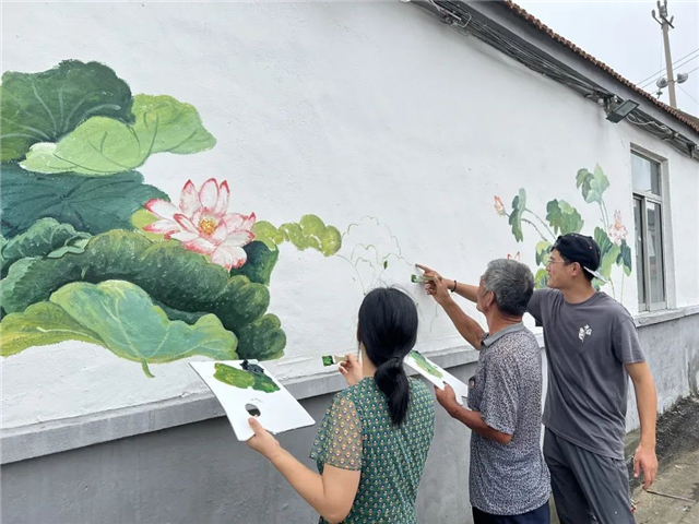 随后,在专业老师的指导下,村民们齐心协力,共同绘制了一幅栩栩如生的《荷美乡风》。大家欣赏着自己的画作,表示十分开心能参与到这次绘制中,为美化自己的乡村尽一份力。