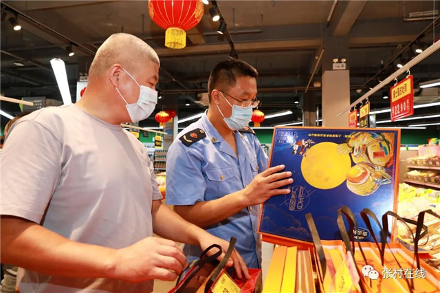 9月7日,张村镇工作人员和执法人员来到开心草帽莱海店,仔细查看店内月饼名称、生产日期、保质期、配料表等标签标识情况,核对生产厂商营业执照、生产资质等,并检查从业人员是否持有有效健康证明,确保从源头到销售过程的食品安全,促进生产经营单位规范生产经营行为。