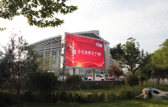 户外大屏展示“学习强国”宣传推介视频。
