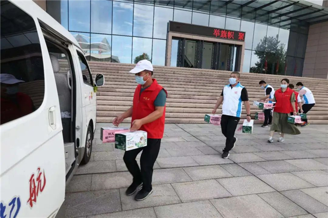 在市新时代文明实践中心活动现场,来自引航爱心志愿者协会、心连心志愿服务团、燕语春风志愿服务团、文明光影志愿服务团和甲夼马家村志愿服务队的负责人共同领取了纯牛奶。团队负责人们在中秋节期间,开展各类走访慰问志愿服务活动,用实际行动,将企业的爱心送到群众身边。