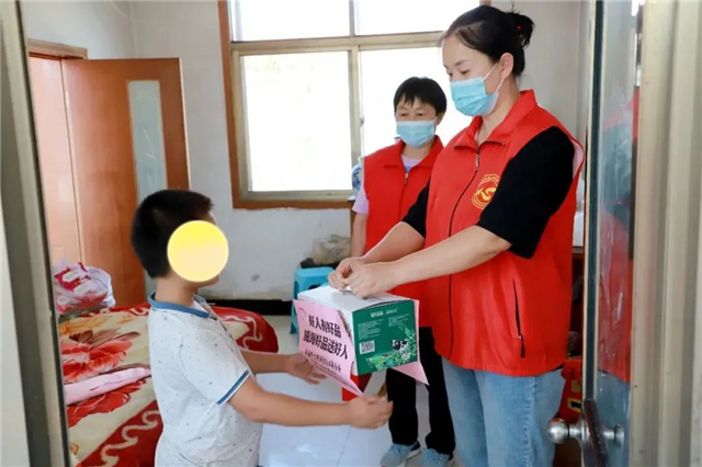 心连心志愿服务团走访寻山、城西街道特殊群体家庭,为他们送去纯牛奶等慰问品。