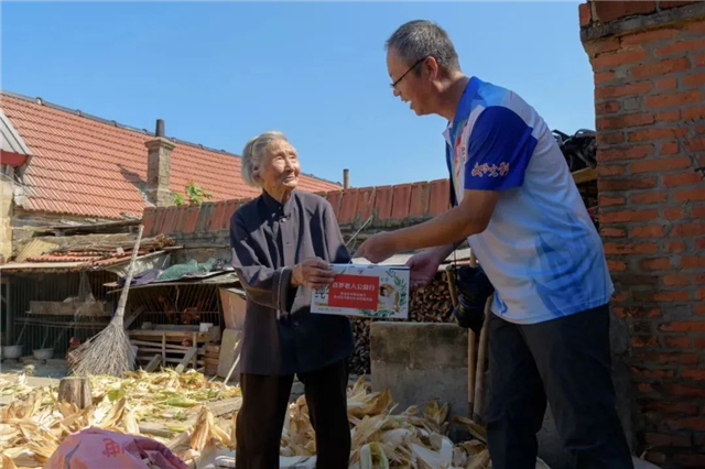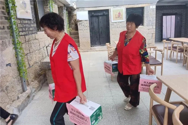 夏庄镇甲夼马家村志愿服务队将爱心企业捐赠的牛奶统一用于暖心食堂就餐老人用餐。