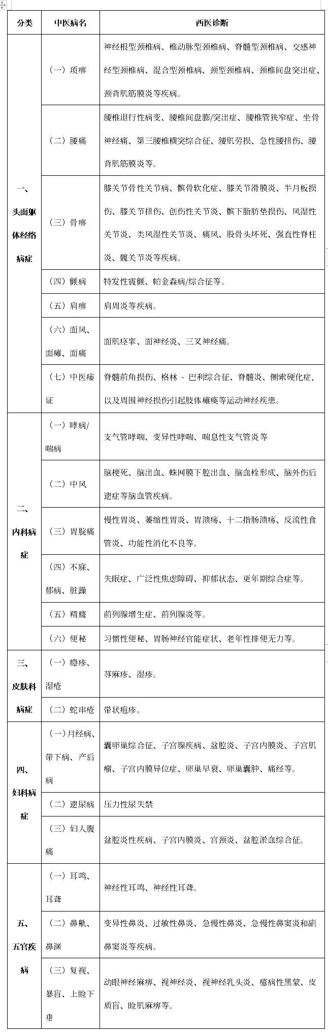 (二十一)开设“中医日间病房”。在开设“中医日间病房”的医疗机构,对符合住院条件且不需非治疗期间在院的以针灸治疗为主的病人,在当日治疗结束后,根据自身情况经医疗机构允许后回家,床位费和护理费按照30%收取。“中医日间病房”21个中医针灸类病种见下表。