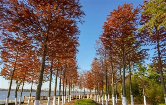 一阵秋风,一抹暖阳,一江秋水,加上鸟儿的点缀,配上随风摇曳的粉黛花海,秋日的香水河岸别有一番风味。回首之处,可以看到炙热红叶与蓝天呼应的相得益彰,翠绿挺拔的松树让秋天带着些许清冷之意,结伴三五好友游园好不惬意。