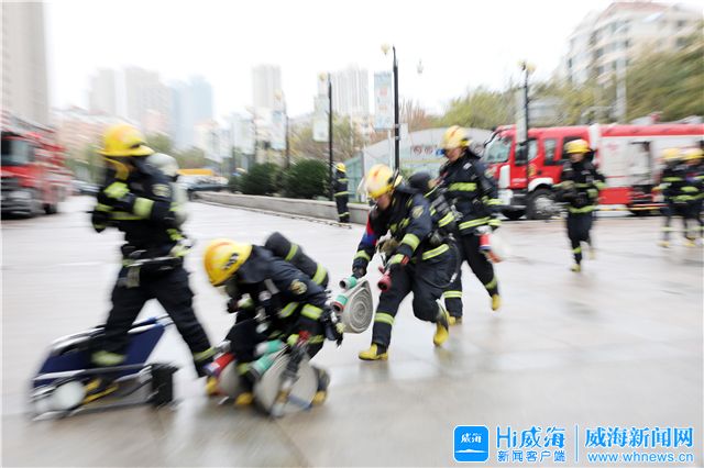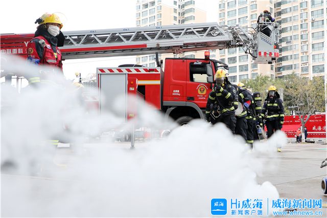 演练现场外,威海市消防救援支队还设置了各类消防知识咨询区、消防器材装备展示区等。消防宣传员向群众发放消防主题彩页,发放印有“威威”形象的小礼品,向市民普及消防安全知识,增强市民在应对火灾事故时的自救互救能力。